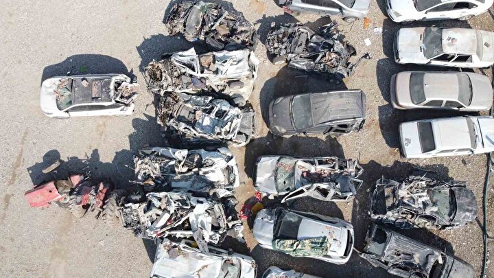 Adıyaman’da enkaz altında kalan ve hurdaya dönen yüzlerce aracın kaldırıldığı yediemin otoparkları havadan görüntülendi. Kentte kaldırılmayan enkazlar altında ise onlarca araç bulunuyor.