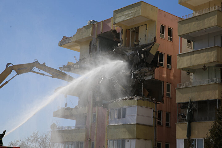 Kahramanmaraş merkezli depremlerden etkilenen Şanlıurfa'da, ağır hasar gören binaların yıkımına başlandı.