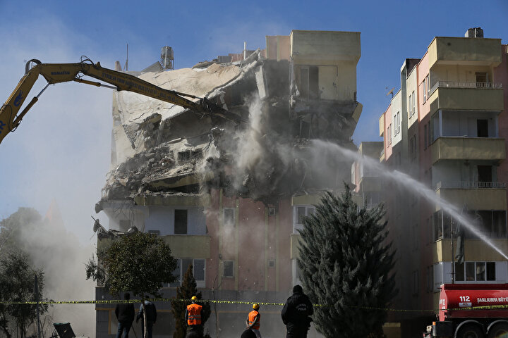 Kahramanmaraş merkezli depremlerden etkilenen Şanlıurfa'da, ağır hasar gören binaların yıkımına başlandı.