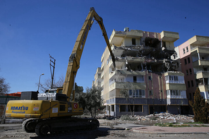 Kahramanmaraş merkezli depremlerden etkilenen Şanlıurfa'da, ağır hasar gören binaların yıkımına başlandı.