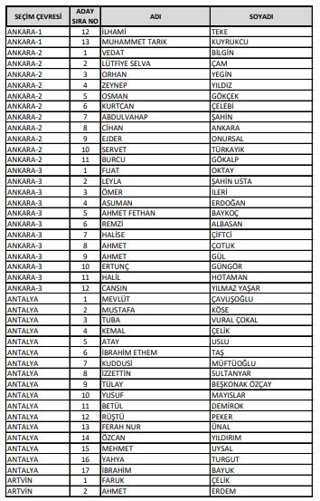 AK Parti'de milletvekili aday listesi netleşti. Bakanların aday olduğu iller de açıklandı.