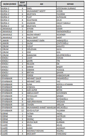 milletvekili aday listesi