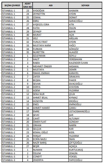 milletvekili aday listesi