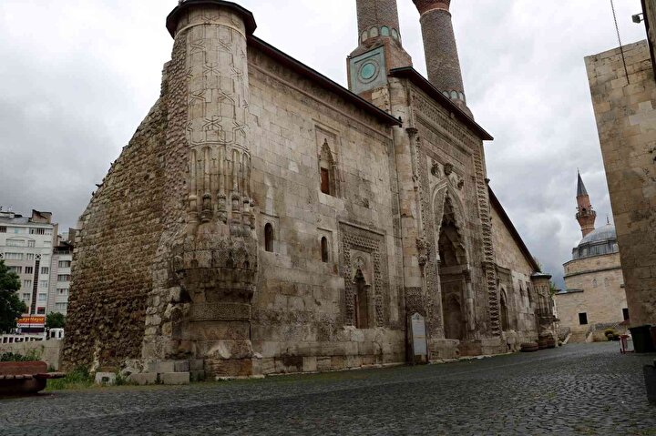 Aydın, Çifte Minareli Medresenin 37.5 metre yükseklikteki taç kapısının en yüksek kapılardan birisi olduğunu belirtip, “Bu yapının en büyük özelliklerinden biri taç kapısının çok devasa ve anıtsal olması, minarelerinin bulunması. Minareleri gören çoğu kişi cami yapısı sanıyor ama burası medrese yapısı. Taç kapının yüksekliği yaklaşık 37.5 metre yüksekliğe sahip olduğu söyleniyor ve bu özellik dönemin şartlarına baktığımız zaman en yüksek girişli medreselerden birisidir bu yapı" diye konuştu.