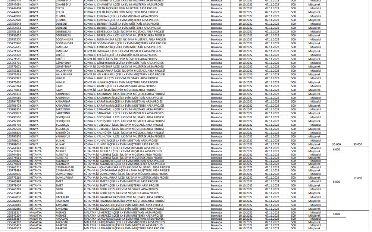 1 milyon arsa ve 10 bin iş yeri için bugün başlayan başvurular 7 Kasım tarihine kadar devam edecek. İşte il il, ilçe ilçe, mahalle mahalle yapılacağı arsa listesi...
