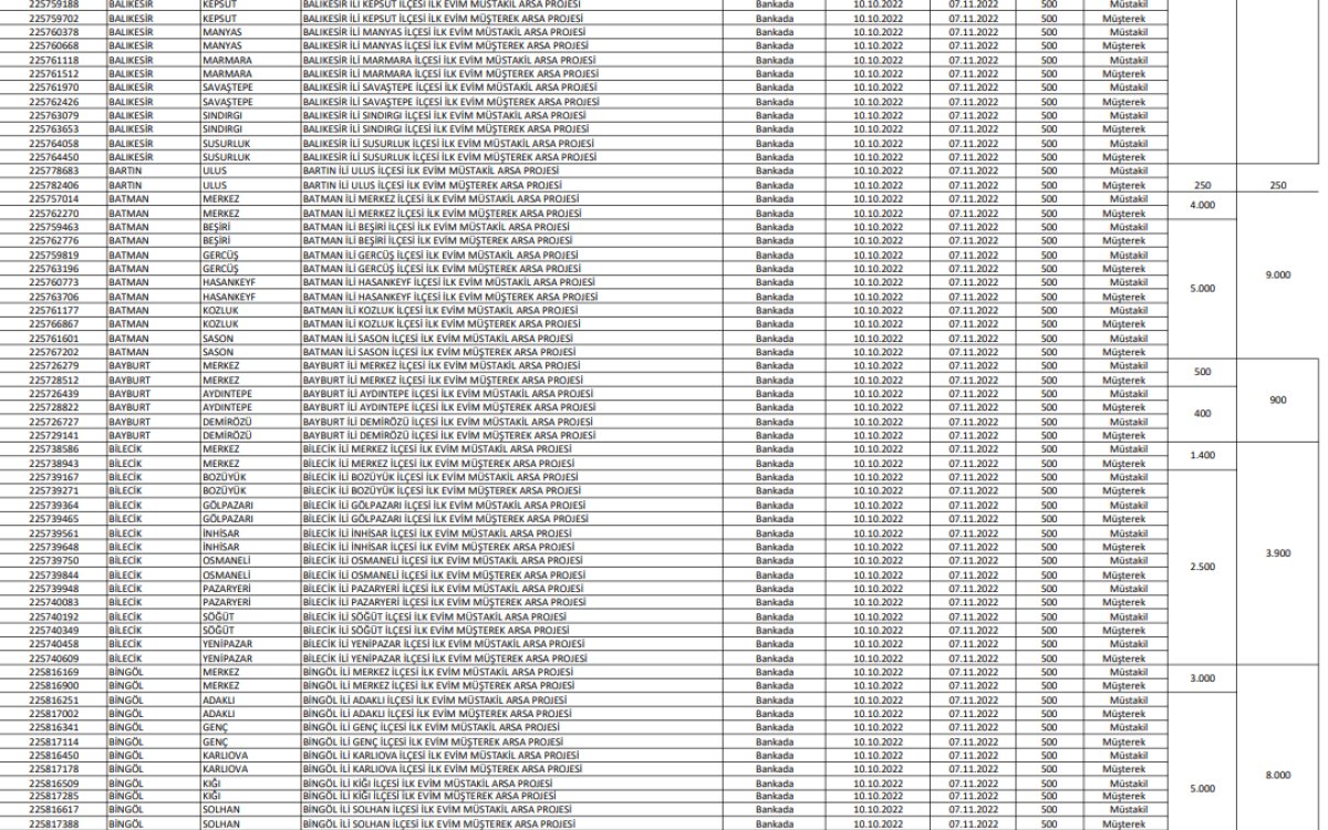 1 milyon arsa ve 10 bin iş yeri için bugün başlayan başvurular 7 Kasım tarihine kadar devam edecek. İşte il il, ilçe ilçe, mahalle mahalle yapılacağı arsa listesi...