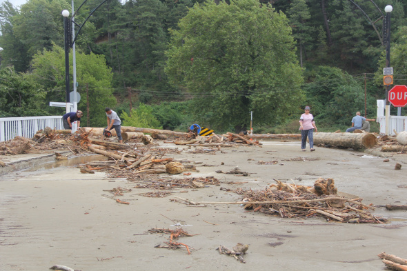Ayancık'ta vatandaşlar kışlık odununu selden topladı