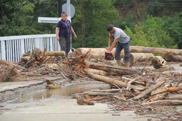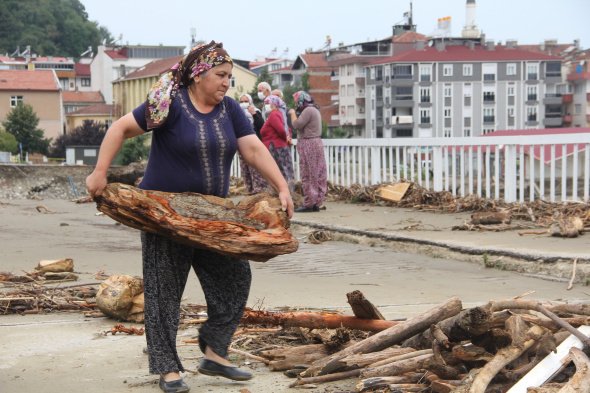 Sinop'un Ayancık ilçesinde sel felaketi nedeniyle şehrin içine kadar taşınan odunlar kışlık ihtiyacı karşılamak üzere vatandaşlar tarafından toplandı.