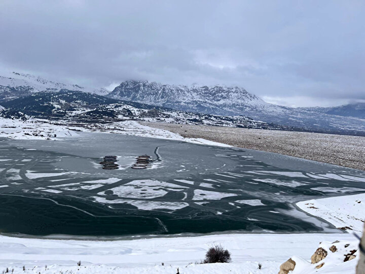 Baraj dondu: Buzu kırarak balıklara yem verdiler