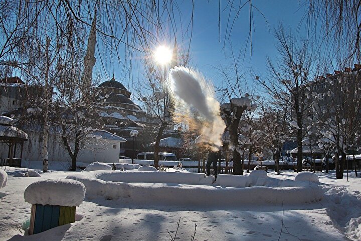 Bingöl'de görsel şölen: Havaya atılan kaynar su dondu