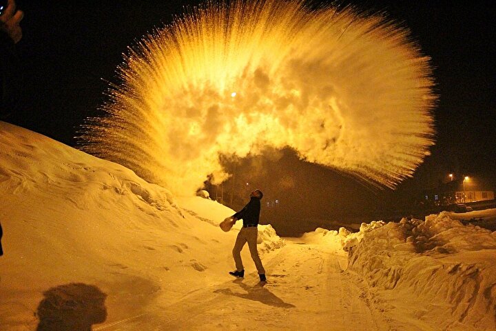 Bingöl'de görsel şölen: Havaya atılan kaynar su dondu