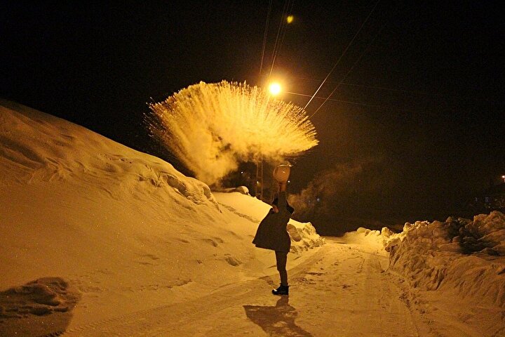 Bingöl'de görsel şölen: Havaya atılan kaynar su dondu