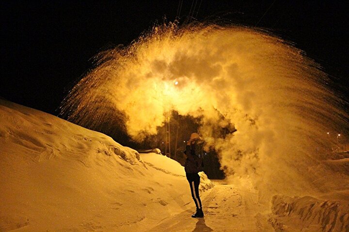 Bingöl'de görsel şölen: Havaya atılan kaynar su dondu