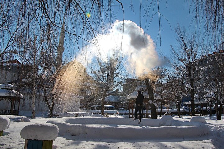 Bingöl'de görsel şölen: Havaya atılan kaynar su dondu