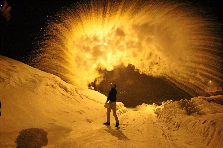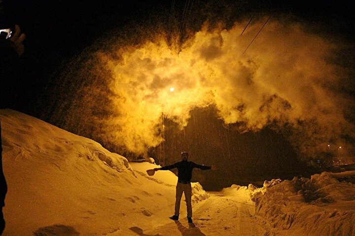 Bingöl'de görsel şölen: Havaya atılan kaynar su dondu