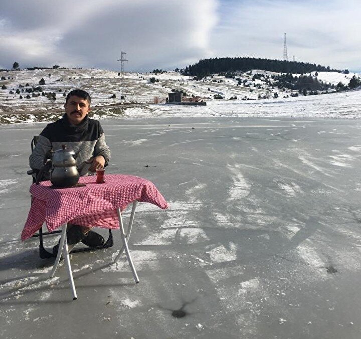 Burası Çıldır değil Sinop: Buz tutan gölde bisiklet sürdüler