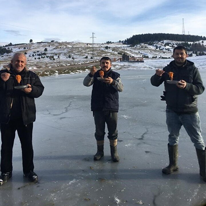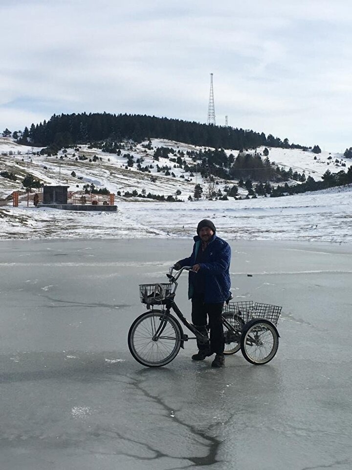 Burası Çıldır değil Sinop: Buz tutan gölde bisiklet sürdüler