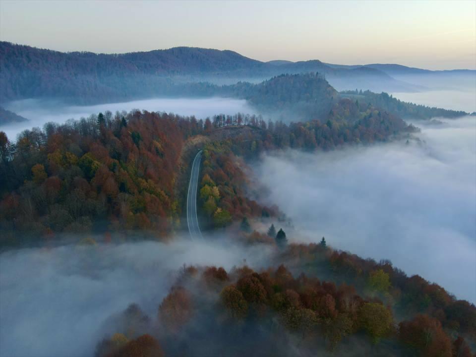 Çam Dağı'nda sis sonbahar renkleriyle bütünleşti