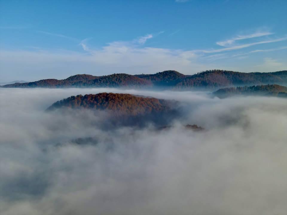 Çam Dağı'nda sis sonbahar renkleriyle bütünleşti