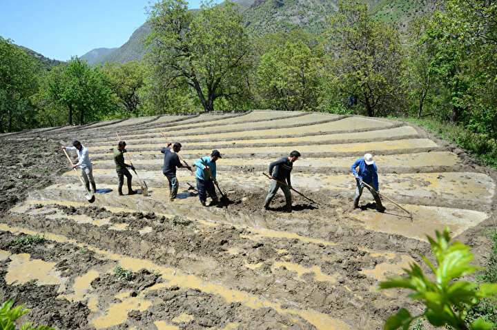 Çamur havuzlarına geleneksel yöntemlerle pirinç ekimi!