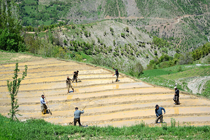 Çamur havuzlarına geleneksel yöntemlerle pirinç ekimi!