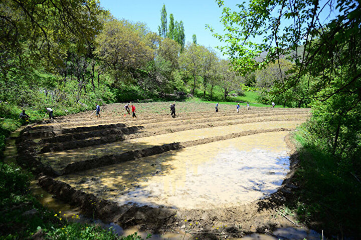 Yüksek rakımlı dağların dik yamaçlarındaki yerleşim yerlerinde her yıl mayıs ayında büyük emek harcanarak imece usulüyle çeltik ekiliyor.