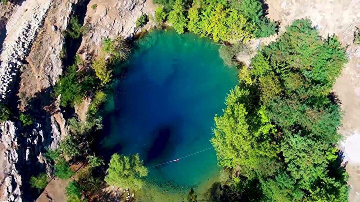 Kahramanmaraş’ta meydana gelen deprem sonrası Onikişubat ilçesi Tekir Mahallesi’ndeki doğa harikası Yeşilgöz obruğunda suyun rengi değişti.