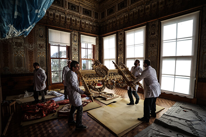 Osmanlı döneminin simge yapılarından Dolmabahçe Sarayı'nın ihtişamlı salonlarını süsleyen perdelerin tamamı, Milli Saraylar Tekstil Konservasyon ve Restorasyon Atölyesi'nde uzman ekipçe titizlikle ve aslında sadık kalınarak onarılıyor.