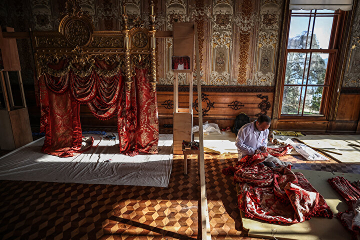 Osmanlı döneminin simge yapılarından Dolmabahçe Sarayı'nın ihtişamlı salonlarını süsleyen perdelerin tamamı, Milli Saraylar Tekstil Konservasyon ve Restorasyon Atölyesi'nde uzman ekipçe titizlikle ve aslında sadık kalınarak onarılıyor.