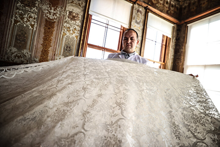 Osmanlı döneminin simge yapılarından Dolmabahçe Sarayı'nın ihtişamlı salonlarını süsleyen perdelerin tamamı, Milli Saraylar Tekstil Konservasyon ve Restorasyon Atölyesi'nde uzman ekipçe titizlikle ve aslında sadık kalınarak onarılıyor.