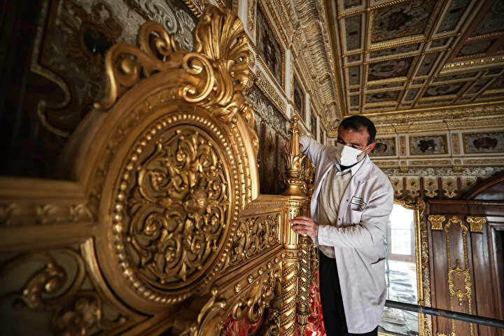 Osmanlı döneminin simge yapılarından Dolmabahçe Sarayı'nın ihtişamlı salonlarını süsleyen perdelerin tamamı, Milli Saraylar Tekstil Konservasyon ve Restorasyon Atölyesi'nde uzman ekipçe titizlikle ve aslında sadık kalınarak onarılıyor.