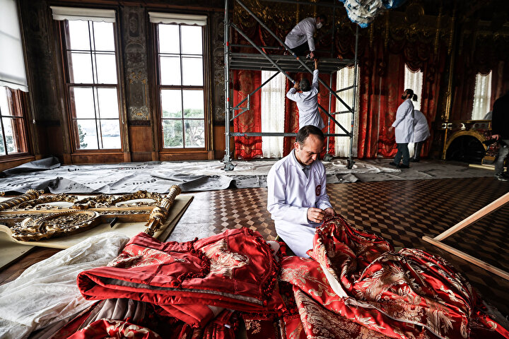 Osmanlı döneminin simge yapılarından Dolmabahçe Sarayı'nın ihtişamlı salonlarını süsleyen perdelerin tamamı, Milli Saraylar Tekstil Konservasyon ve Restorasyon Atölyesi'nde uzman ekipçe titizlikle ve aslında sadık kalınarak onarılıyor.