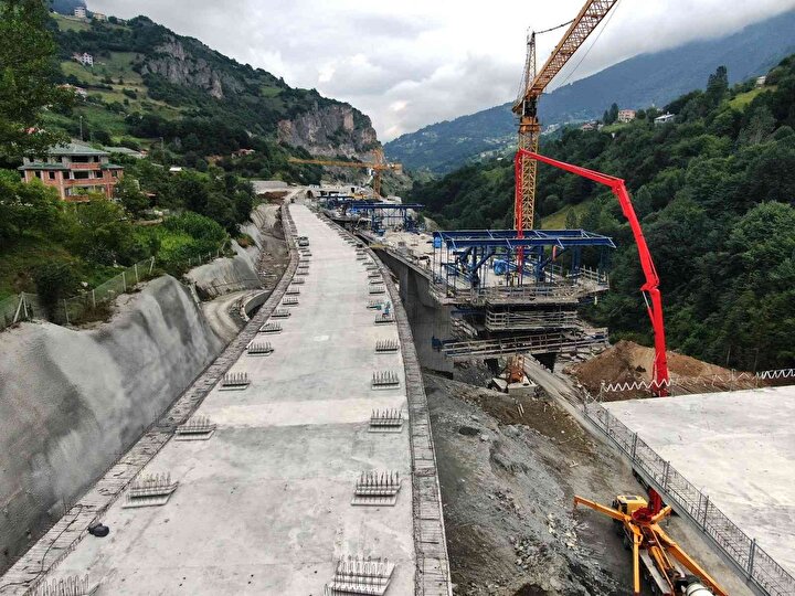 Toplam 5 sayfadan 2. sayfadasınız.Zigana tüneli 14 bin 500 metre uzunluğunda çift tüpten oluşuyor. Toplam uzunluğu bağlantı yolları ile birlikte 15 km’yi aşıyor. 2,5 Milyar Lirayı bulan yatırım bedeli ile 12 metre genişliğindeki mevcut devlet yolu 2x2 şeritli bölünmüş yol haline gelecek.