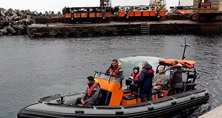 Adalılar adaya özel olarak gönderilen kovid aşılarını almak için özel olarak tekneye bindiriliyor.