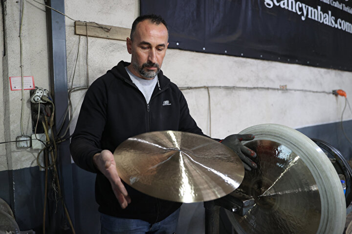 Atölyede ustalar tarafından çekiçle dövülerek son hali verilen ziller, torna işlemi sonrası yapılan testlerin ardından satışa hazır hale geliyor.