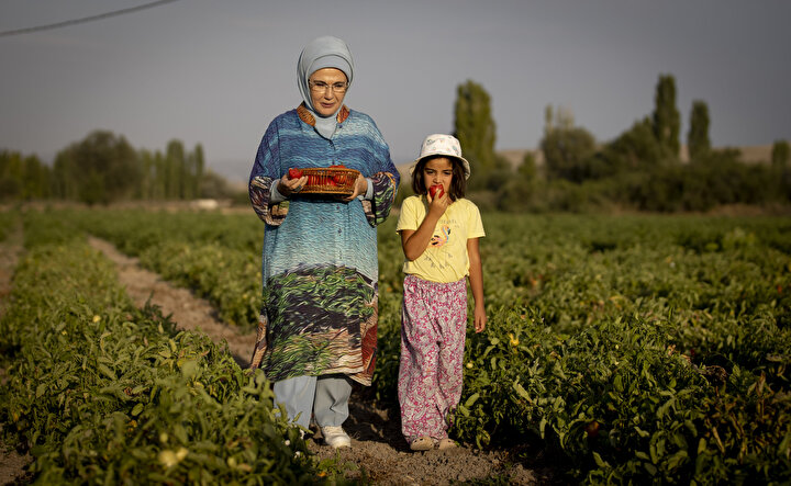Emine Erdoğan Ayaş'ta çiftçi kadınlarla tarladan domates topladı