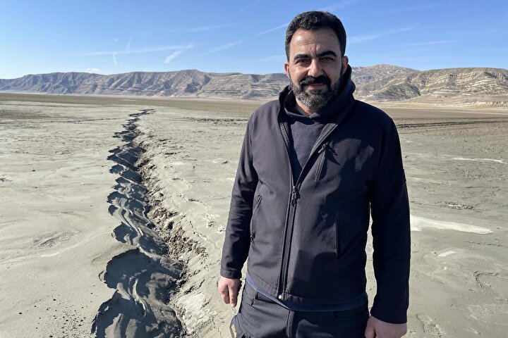 Elazığ'da 17 Şubat'ta meydana gelen 4,6 büyüklüğündeki depremin ardından suların çekildiği Keban Baraj Gölü sahasındaki yaklaşık 20 kilometrelik fay hattında yarıklar oluşturan zemin sıvılaşması dron ile görüntülendi.
