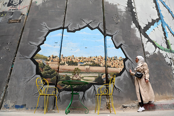 İsrail işgaline tepki gösteren ve Filistin halkına destek veren grafiti sanatçıları, Batı Şeria'da inşa edilen Ayrım Duvarı'nın Beytüllahim tarafında kalan kısmını rengarenk grafitilerle süsledi.