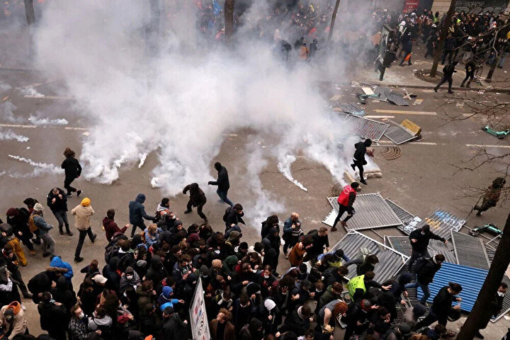 Fransa'da hükümetin Cumhurbaşkanı Emmanuel Macron'un talebi üzerine parlamentoda oylanmadan tartışmalı emeklilik reformunu kabul etmesine tepki gösteren vatandaşlar, Başbakan Elisabeth Borne'un reformu mecliste oylamaya sunmadan Anayasa'nın 49. maddesinin 3. fıkrasını devreye alarak kabul ettiklerini açıklaması üzerine başkent Paris'te bir araya gelerek gösteri düzenledi.