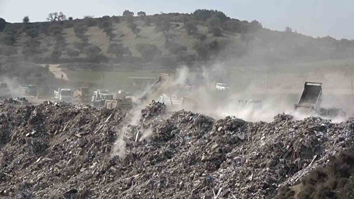 Hatay’da meydana gelen depremlerin ardından yıkılan binaların enkazını taşıyan hafriyat kamyonları metrelerce kuyruk oluşturdu. Yüzlerce hafriyat kamyonunun boş alana mekik dokuduğu o anlar drone ile görüntülendi.