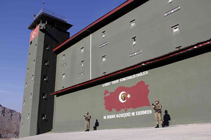 Dik yamaçlı dağların arasında kurulan ve sürekli insansız hava araçlarının görev aldığı Dağlıca Taburu ve çevresindeki hâkim noktalara kurulan üs bölgeleri, teknolojik silah ve ekipmanlarla korunuyor.