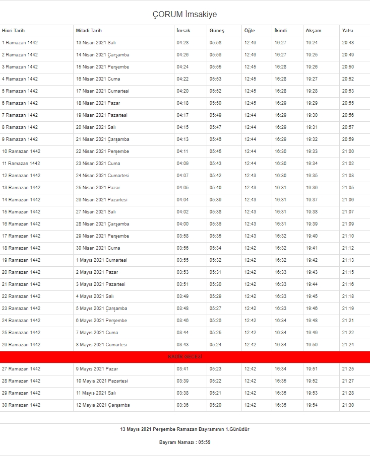 2021 oruç saat kaçta açılacak? Diyanet İşleri Başkanlığı'nın resmi internet sitesinden il il imsakiye takvimi yayınlandı. İşte il il imsakiye 2021 - İftar ve sahur vakitleri...