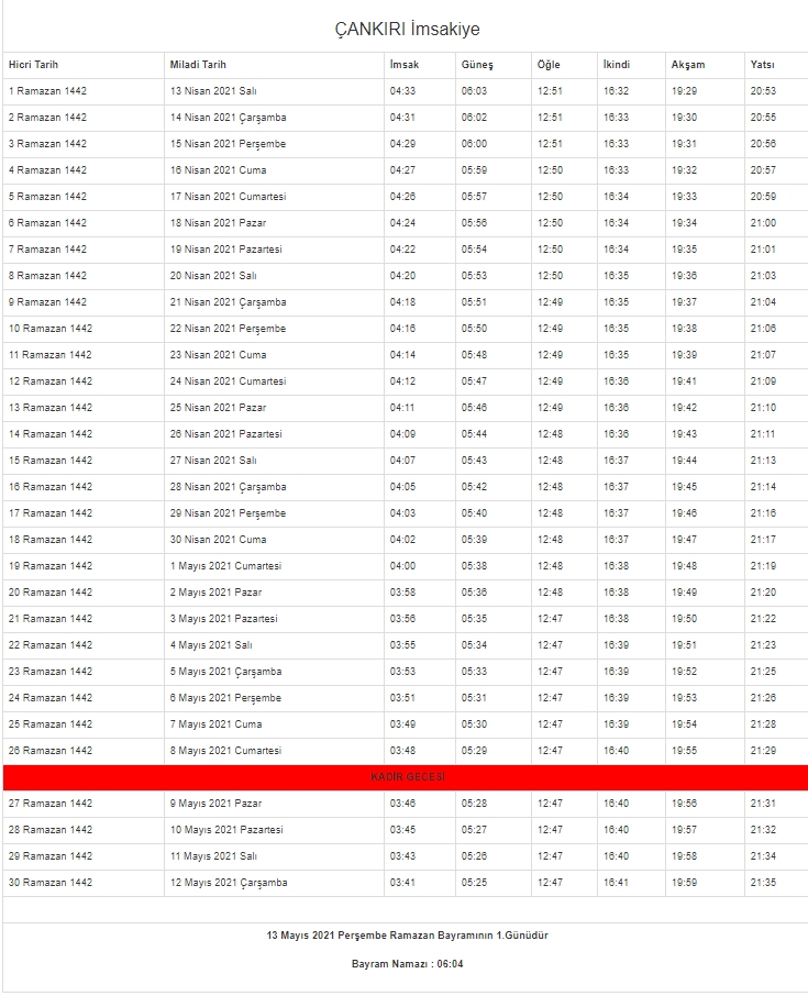 2021 oruç saat kaçta açılacak? Diyanet İşleri Başkanlığı'nın resmi internet sitesinden il il imsakiye takvimi yayınlandı. İşte il il imsakiye 2021 - İftar ve sahur vakitleri...