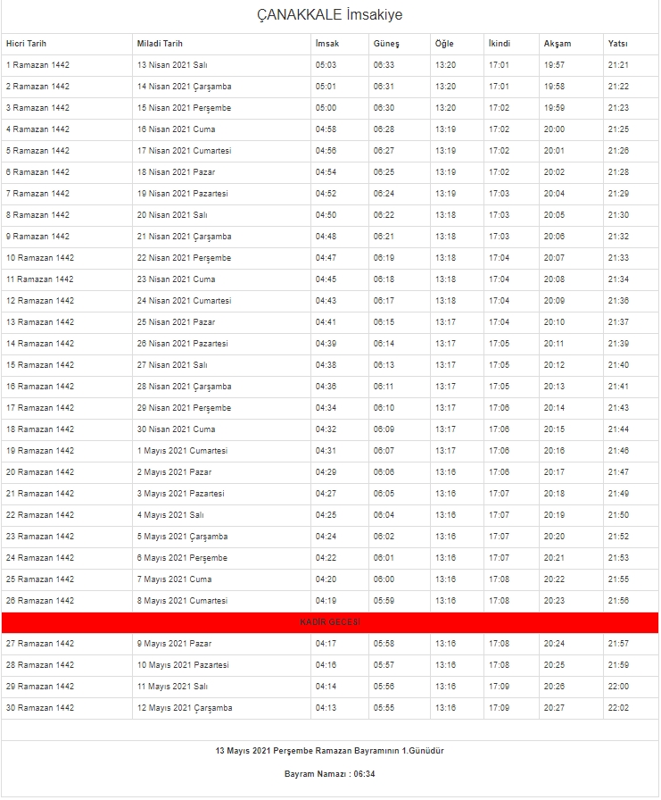 2021 oruç saat kaçta açılacak? Diyanet İşleri Başkanlığı'nın resmi internet sitesinden il il imsakiye takvimi yayınlandı. İşte il il imsakiye 2021 - İftar ve sahur vakitleri...