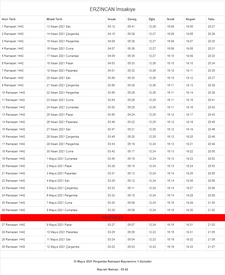 2021 oruç saat kaçta açılacak? Diyanet İşleri Başkanlığı'nın resmi internet sitesinden il il imsakiye takvimi yayınlandı. İşte il il imsakiye 2021 - İftar ve sahur vakitleri...