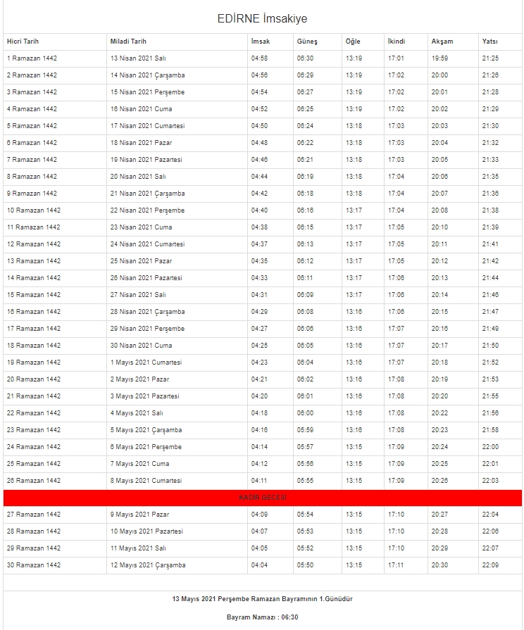 2021 oruç saat kaçta açılacak? Diyanet İşleri Başkanlığı'nın resmi internet sitesinden il il imsakiye takvimi yayınlandı. İşte il il imsakiye 2021 - İftar ve sahur vakitleri...