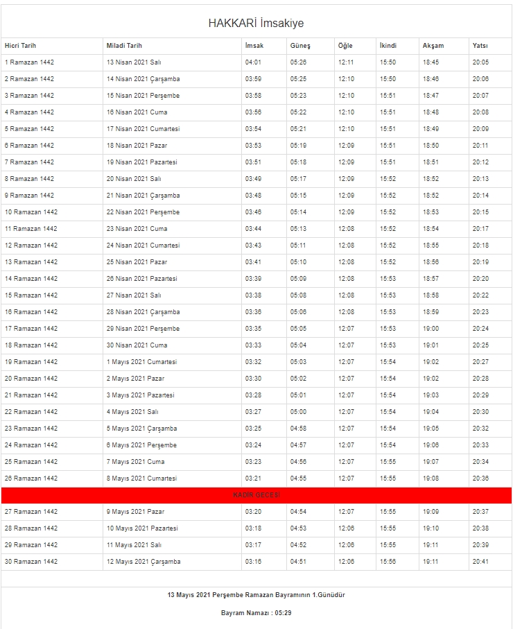 2021 oruç saat kaçta açılacak? Diyanet İşleri Başkanlığı'nın resmi internet sitesinden il il imsakiye takvimi yayınlandı. İşte il il imsakiye 2021 - İftar ve sahur vakitleri...