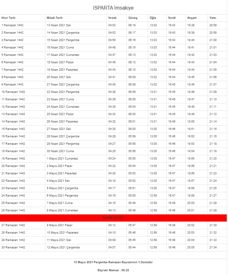 2021 oruç saat kaçta açılacak? Diyanet İşleri Başkanlığı'nın resmi internet sitesinden il il imsakiye takvimi yayınlandı. İşte il il imsakiye 2021 - İftar ve sahur vakitleri...