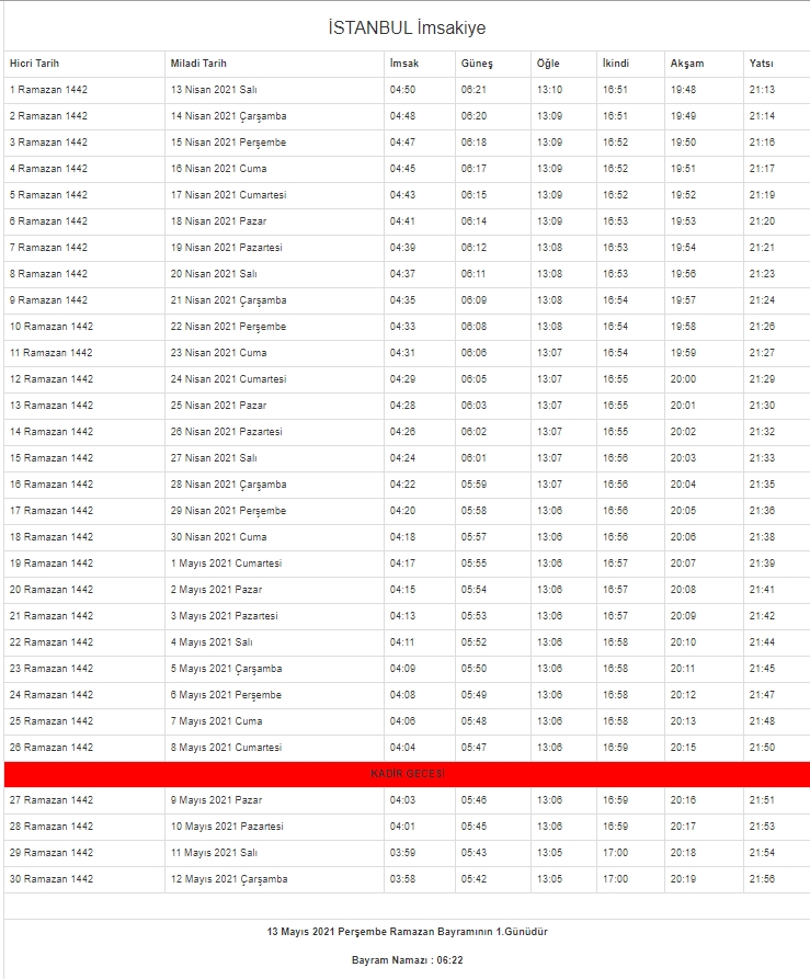 2021 oruç saat kaçta açılacak? Diyanet İşleri Başkanlığı'nın resmi internet sitesinden il il imsakiye takvimi yayınlandı. İşte il il imsakiye 2021 - İftar ve sahur vakitleri...