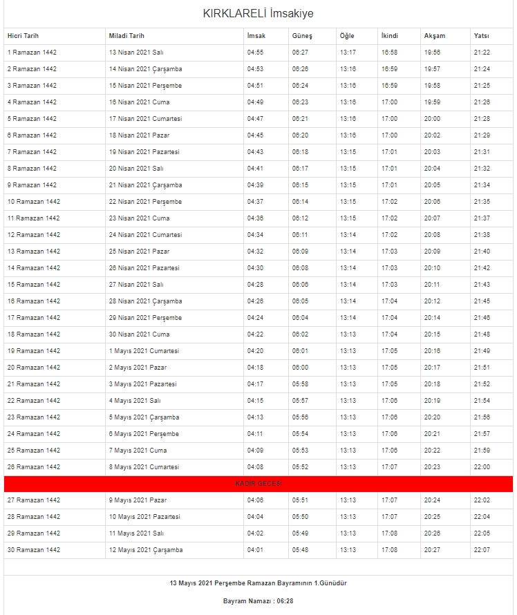 2021 oruç saat kaçta açılacak? Diyanet İşleri Başkanlığı'nın resmi internet sitesinden il il imsakiye takvimi yayınlandı. İşte il il imsakiye 2021 - İftar ve sahur vakitleri...